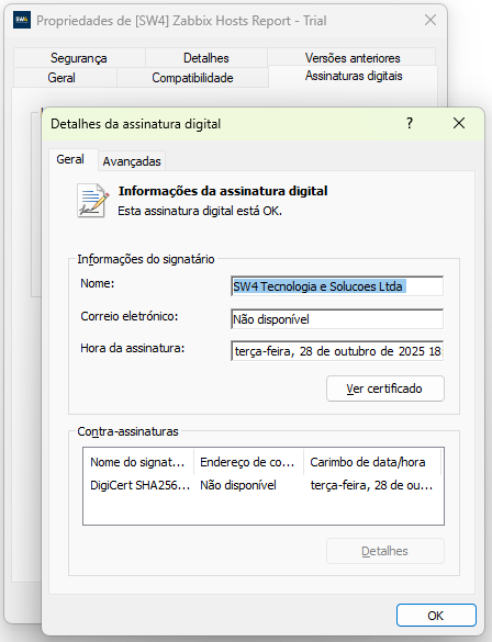 Execução segura Programa assinado digitalmente pela SW4 Tecnologia e Soluções