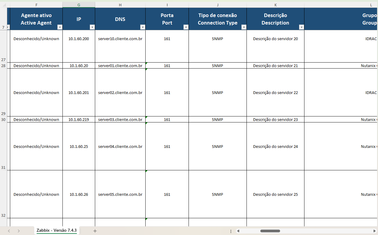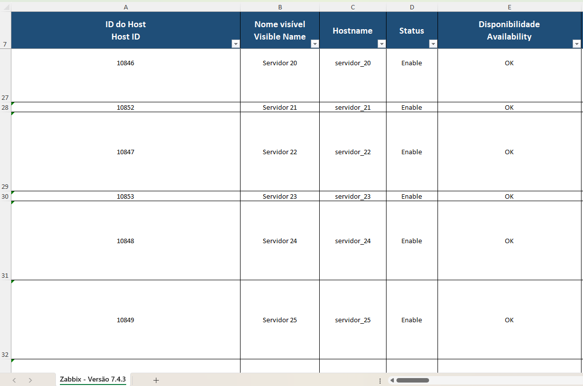 Visibilidade completa Veja todos os hosts monitorados em uma única planilha